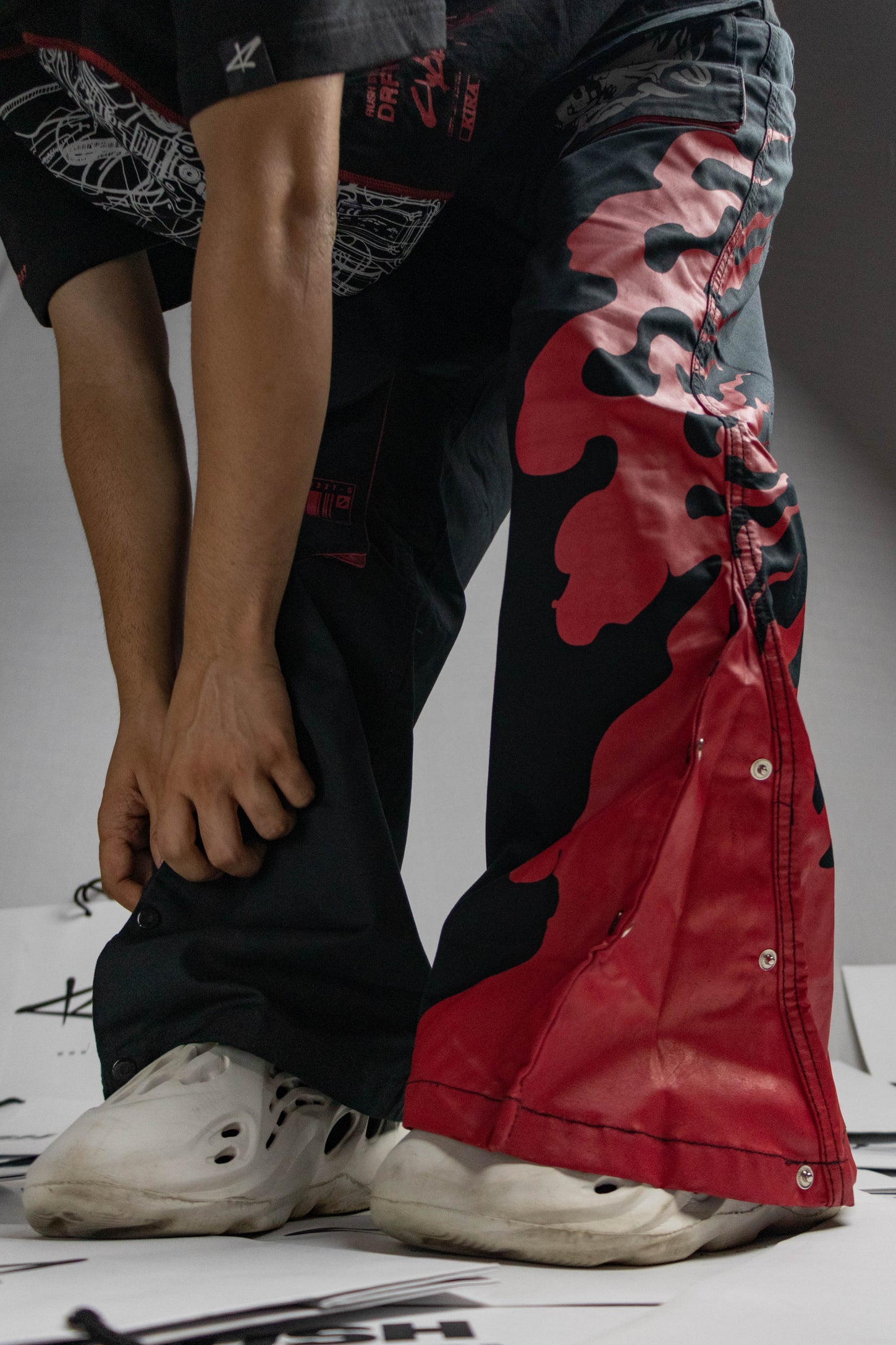 In the 80s, rockstars owned the stage with bell bottoms. We packed that attitude into a cyberpunk frame. Unsnap the buttons along the lower leg and let the flare spread, instantly turning your look from tactical to theatrical. Need a low-key fit for night runs? Snap the legs back together for a sleek straight silhouette that keeps you under the radar.