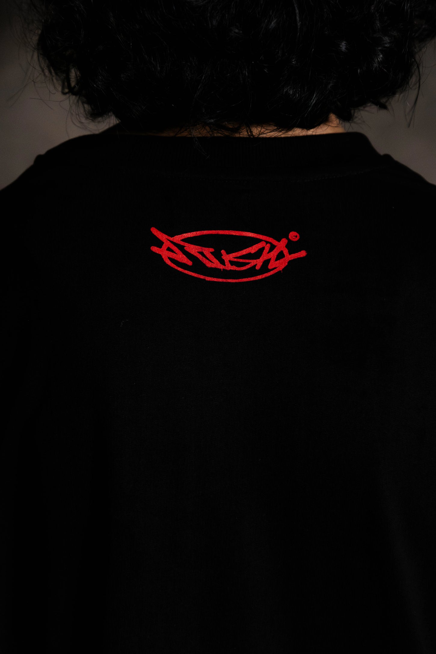 Inspired by Johnny Silverhand’s tragic end, this tee asks the question: what happens to a legend’s body when the Soulkiller rips his mind into the net? We imagined Arasaka scavenging Silverhand’s remains to reverse-engineer their own augmented army. On the front you’ll see Johnny’s ribcage blueprint stitched in red, your body, cut open, reborn as a product of Arasaka.