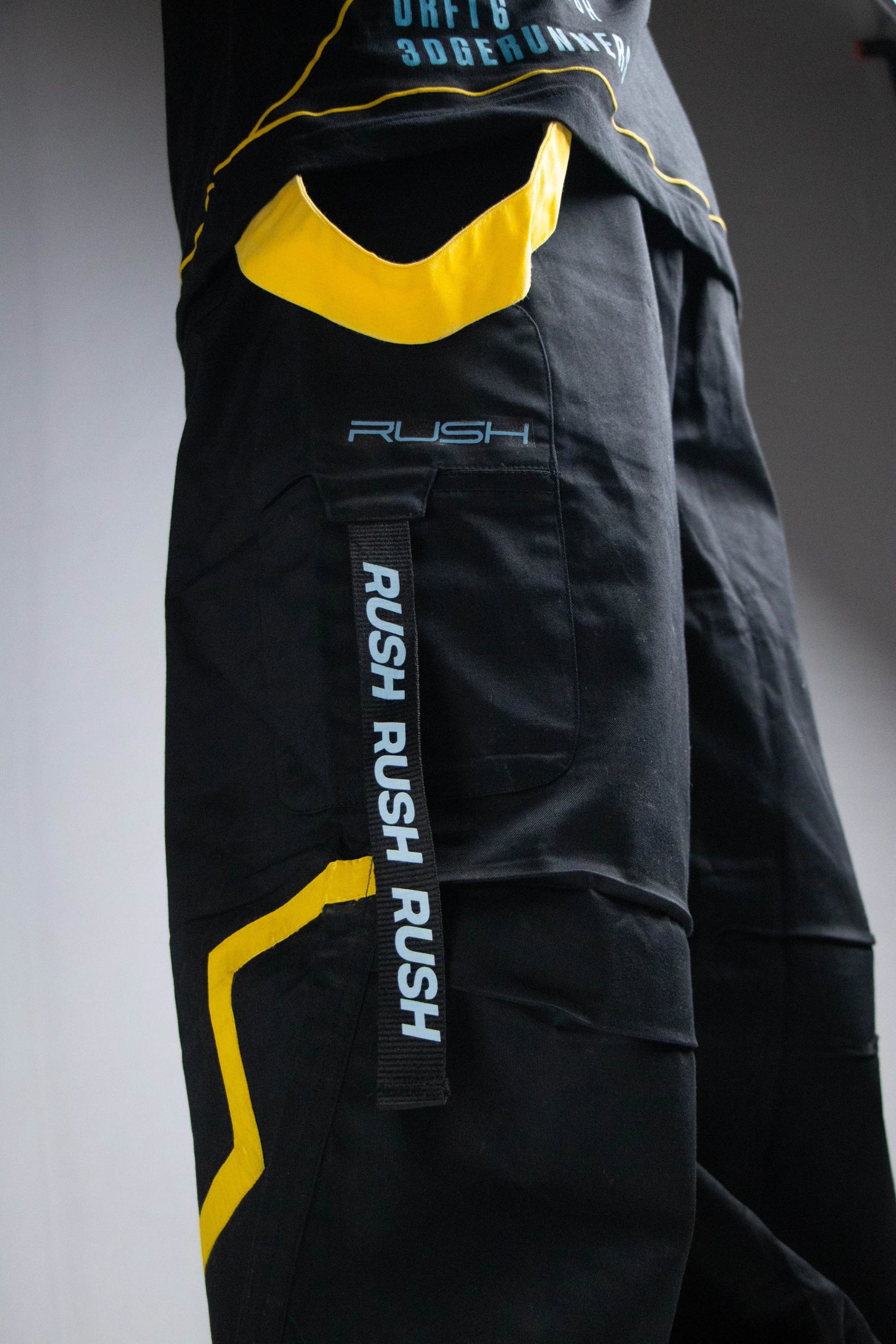 David Martinez was a street kid who lost everything when Arasaka’s negligence cost his mother her life. He patched into a Sandevistan implant, turning him into a one-man takedown squad. His parachute pants weren’t just fashion, they let him move faster than any corporate soldier. We updated that look for real-world use: the same yellow side belts, plus reinforced fasteners at the waist and ankles for a perfect fit when you need to sprint or slide.