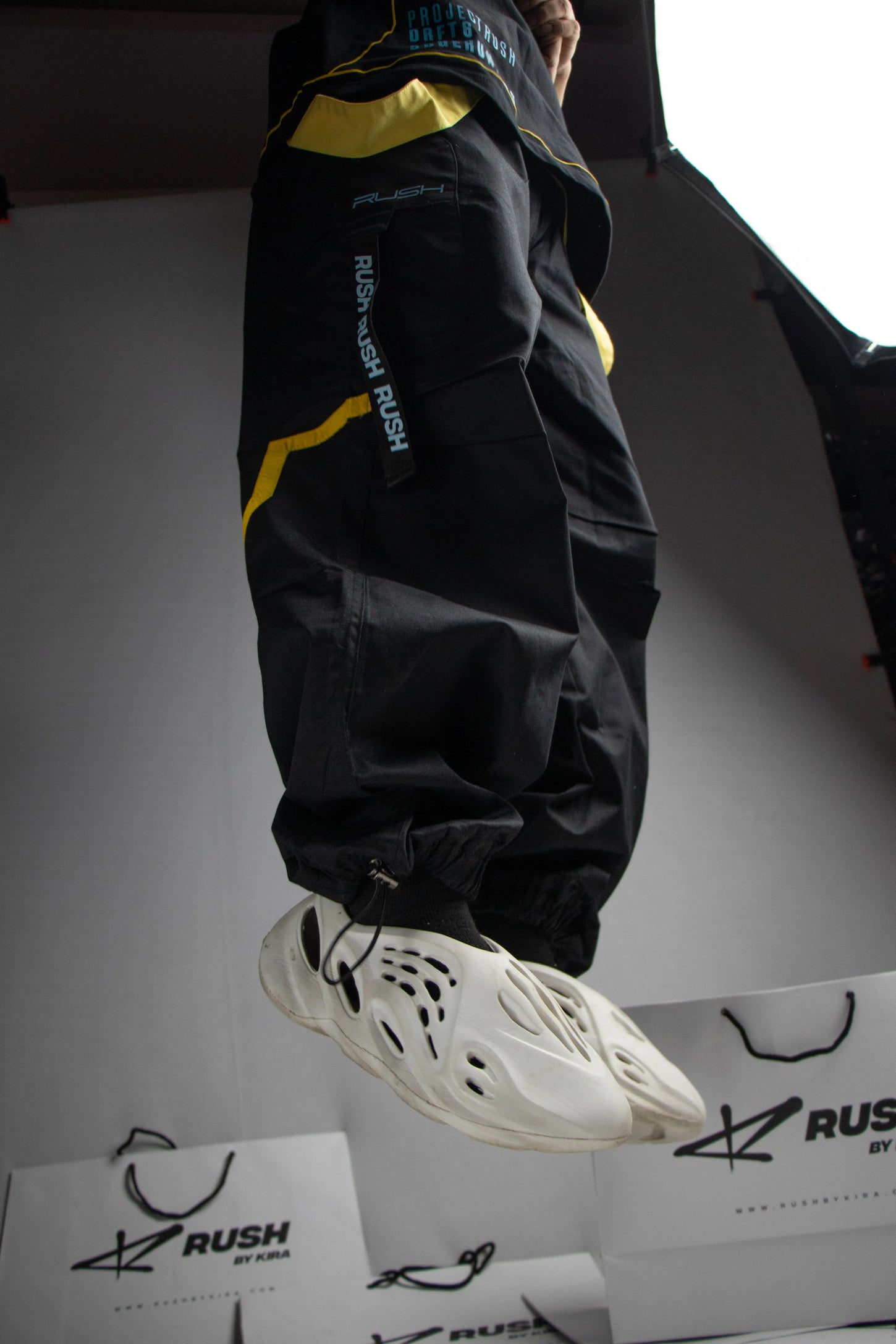 Inspired by David Martinez’s battle-ready style, these parachute pants blend agility with attitude. He lost his mom to Arasaka’s twisted policies and burned the city down with his Sandevistan. Now you can sprint through Night City in yellow-belted, utility-loaded pants that let you outpace any corporate goon.